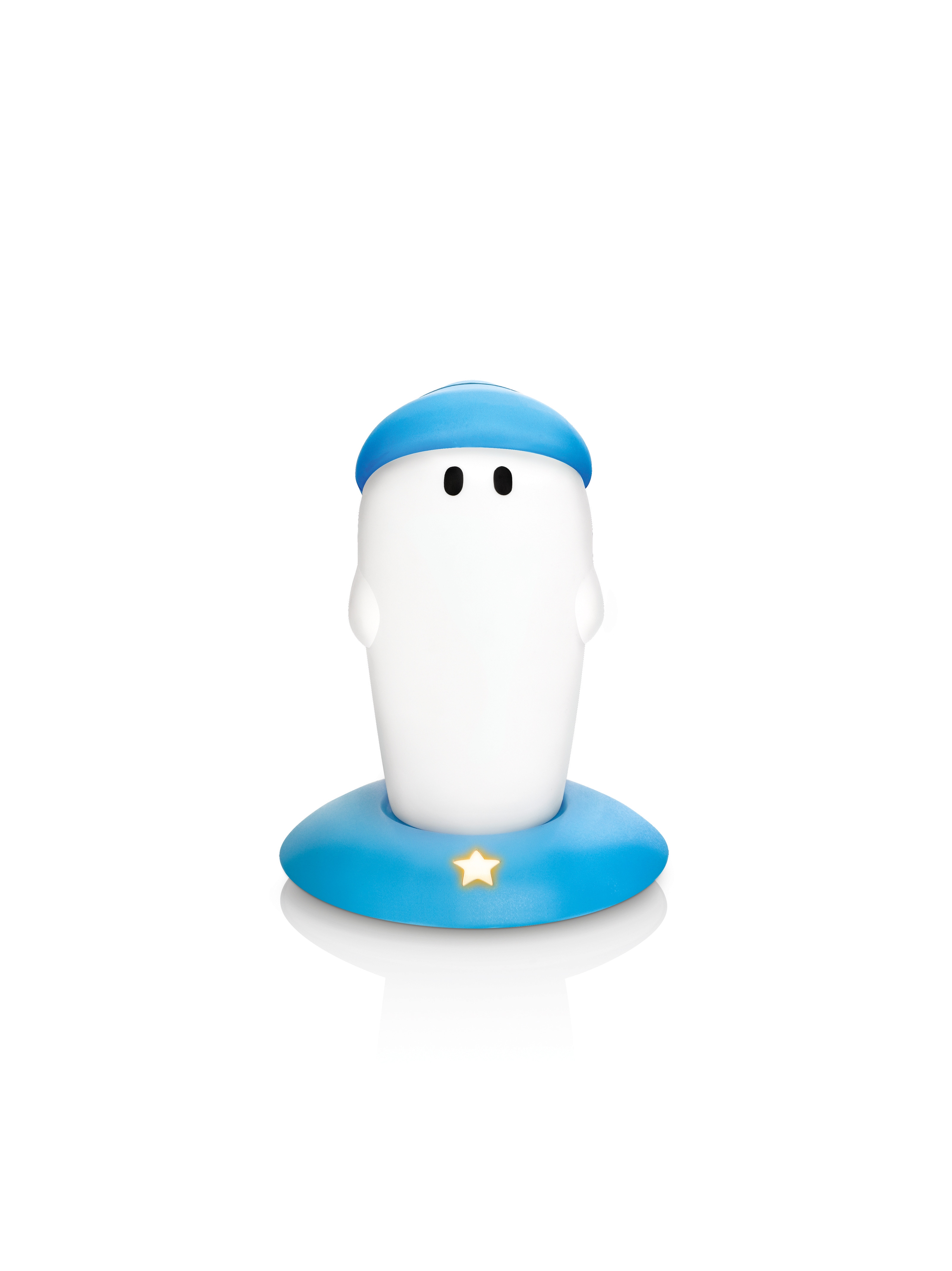 Die myKidsroom Nachtlichter gibt es in drei Motiven: Der Lichtkumpel Littlebro trägt ein blaues Häubchen auf dem Kopf, das Drago Nachtlicht besitzt niedliche, grüne Drachenzacken und die runde Bollie präsentiert sich im zarten Pink. Sie können überall im Kinderzimmer platziert werden, sogar neben dem Kopfkissen. Damit auch die Kleinsten selbst entscheiden können, wann ihr Begleiter für sie leuchten soll, lässt sich das Licht ganz einfach durch Kippen der Figuren ein- und ausschalten.