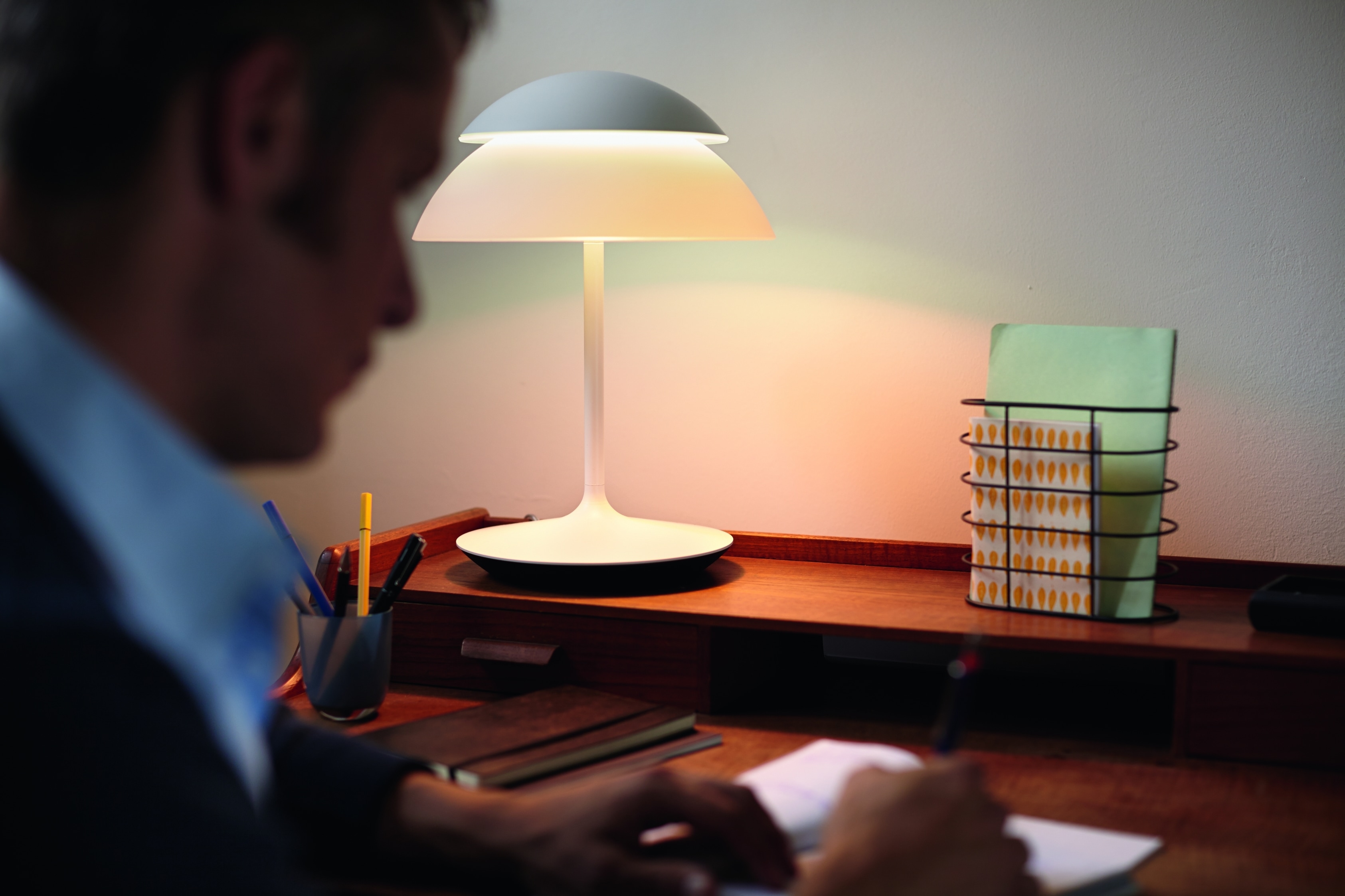 Hue Beyond-Leuchten verfügen über zwei LED-Module, deren Licht zum einen nach oben, zum anderen nach unten gerichtet ist. Beide Lichtquellen lassen sich per hue-App unabhängig voneinander steuern. Das ermöglicht zahlreiche neue Lichtszenarien, um die Wohnraumbeleuchtung noch variabler und attraktiver zu gestalten. Beispielsweise ein entspannendes Abend-Ambiente aus warmen Farbtönen bei zugleich perfektem Weißlicht zum Lesen. Die elegante Tischleuchte ist ideal für zum Beispiel häusliche Arbeitszimmer. Die Pendelleuchte passt ausgezeichnet über Esstische, und die Deckenleuchte ist perfekt für Wohnzimmer geeignet, in denen sie sich multifunktional einsetzen lässt.