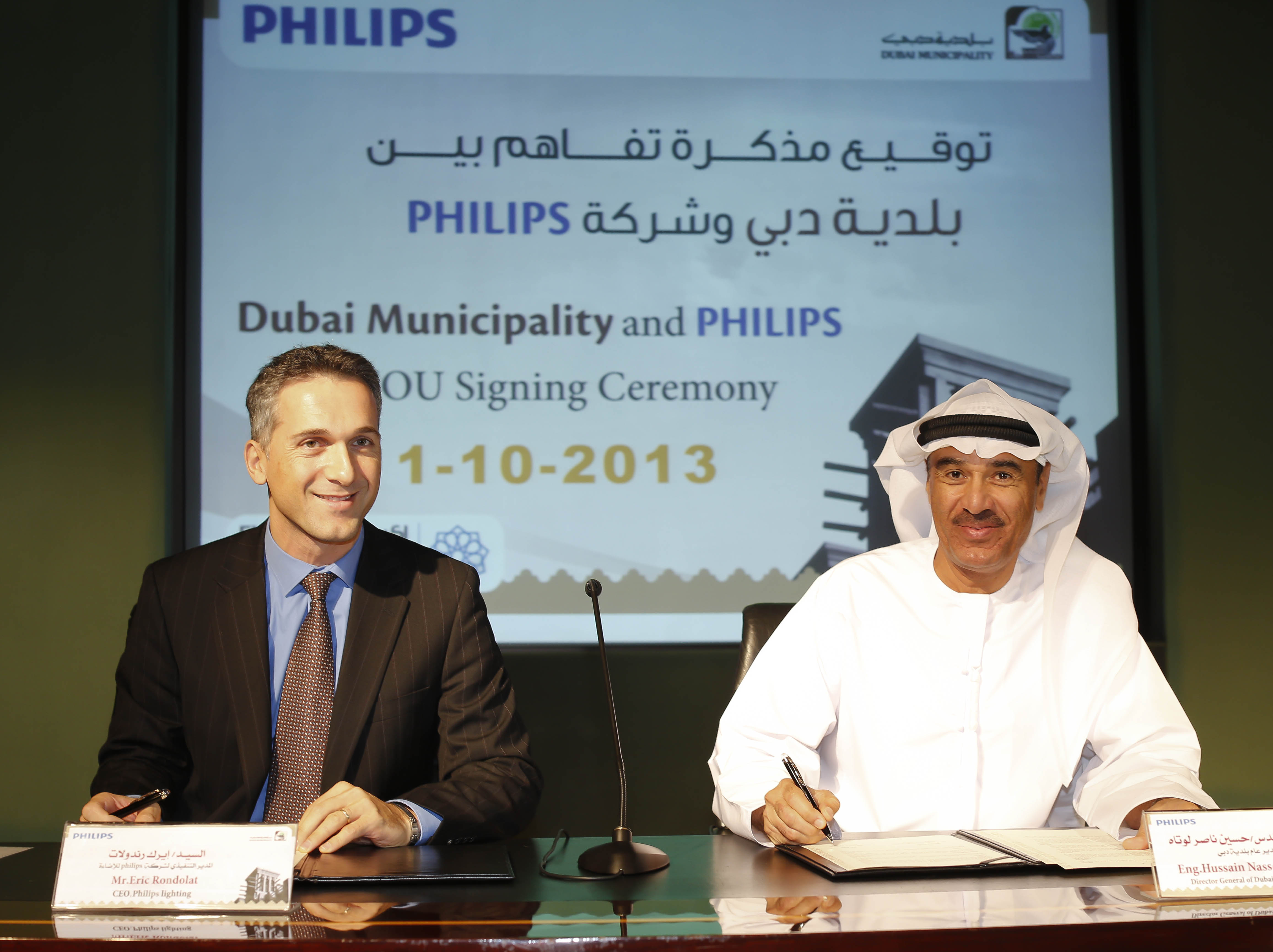The agreement was duly signed by Eng. Hussain Nasser Lootah, Director General of Dubai Municipality and Mr. Eric Rondolat, Chief Executive Officer, Philips Lighting.