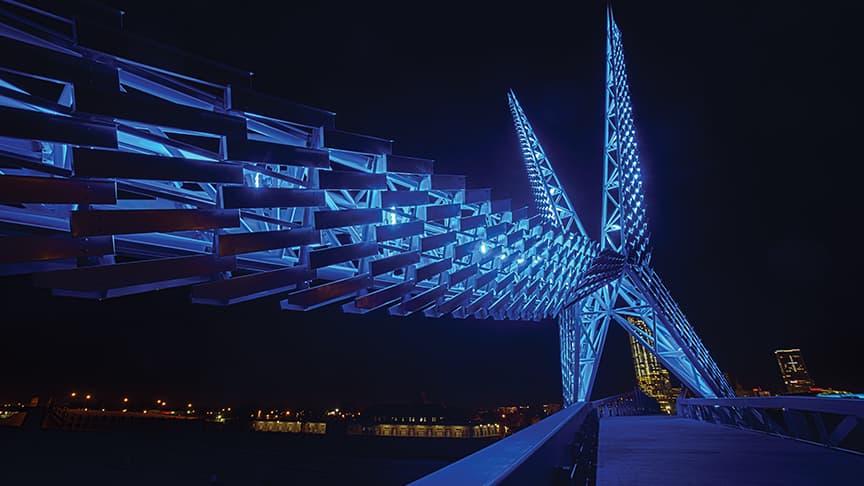 Signify lighting transforms bridges into vibrant city landmarks, highlighting their architecture while reducing energy use and operational effort.