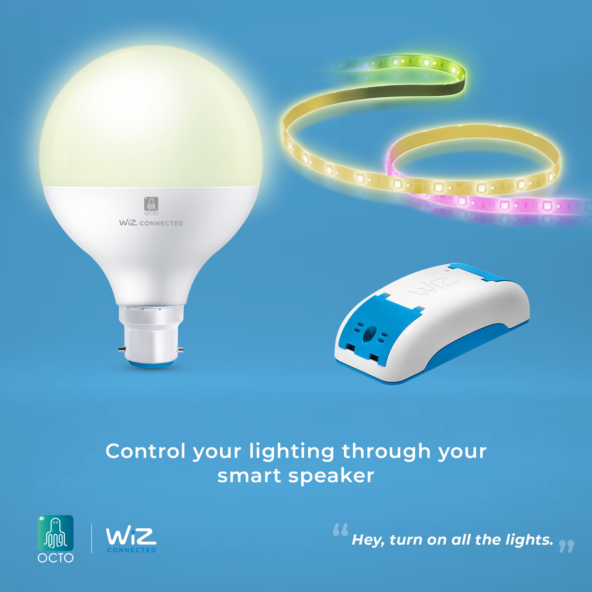 WiZ technology encapsulates multi-protocol connectivity such as WiFi, Bluetooth and 2.4 Ghz low consumption radio frequency. It integrates a feature rich app with intuitive interface, a secured cloud access with real-time interoperability with leading IoT platforms and voice assistants such as Google Assistant, Alexa, Apple Siri shortcuts and Samsung Smart Things.