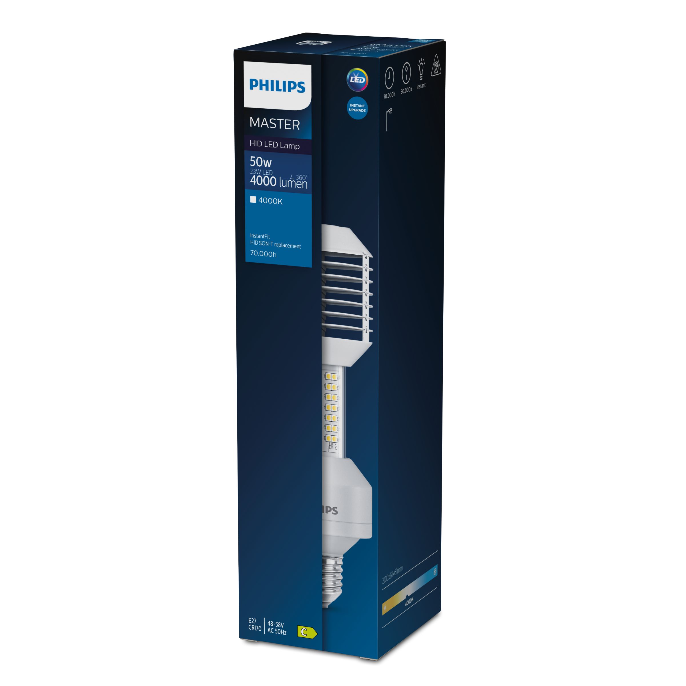 Las lámparas Philips MASTER - LED HID SON-T son una solución LED fácil con una recuperación de la inversión rápida para reemplazar las lámparas de descarga de alta intensidad (HID) y las lámparas de sodio de alta presión (SON). Las soluciones Philips MASTER - LED HID SON-T aportan las ventajas de la eficacia energética y la larga duración de los LED como remplazo de HID, con ahorros instantáneos por una baja inversión inicial. Gracias al tamaño adecuado de la lámpara y la distribución lumínica, es posible adaptar las lámparas MASTER – LED HID SON-T a los sistemas SON y SON-T existentes, que mejoran la calidad de la iluminación con LED sin necesidad de cambiar el balastro o el reflector de la luminaria (SI hay reemplazos).