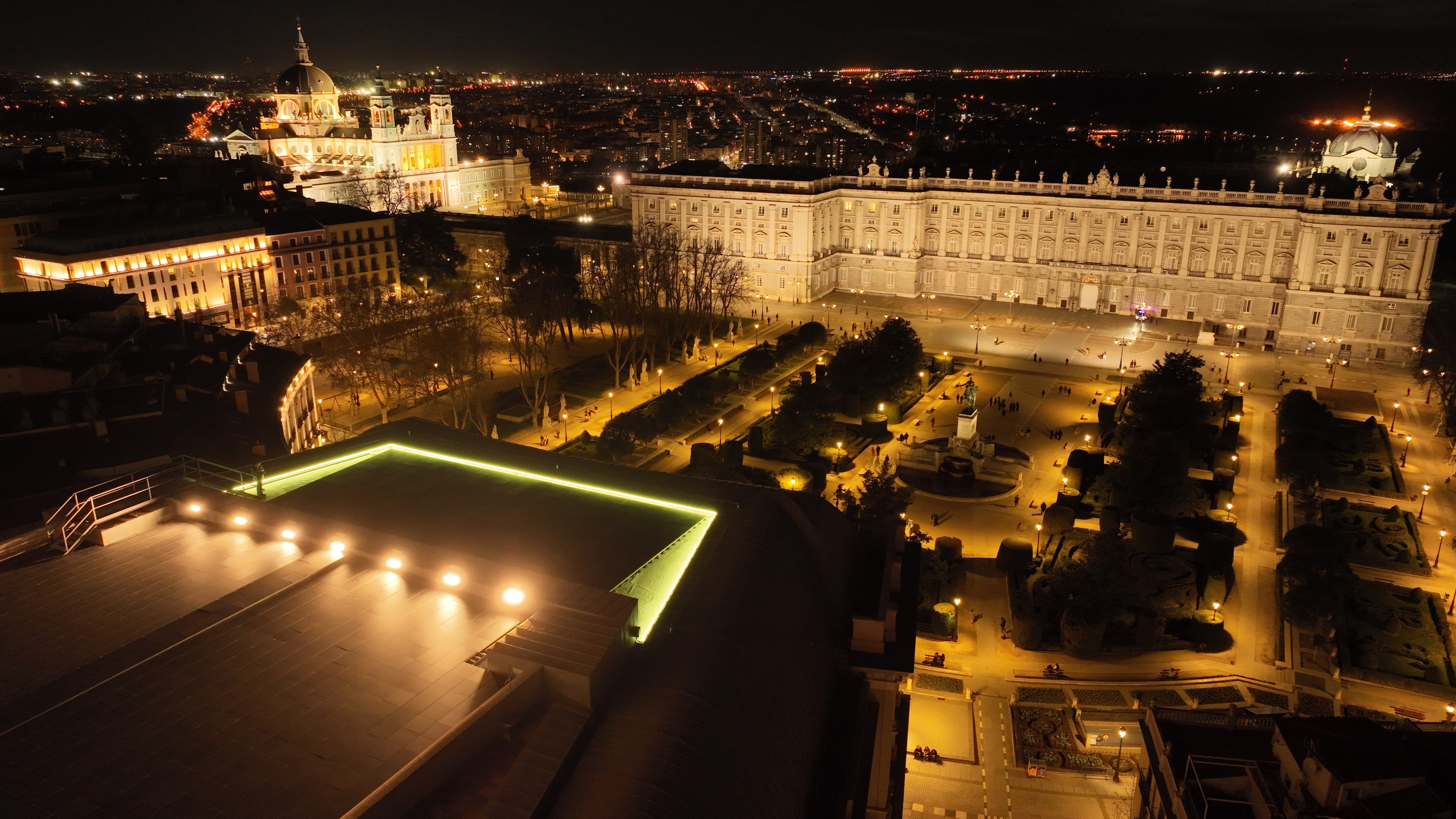 La intervención, desarrollada en dos fases entre 2022 y 2025, ha transformado más de 3.500 m² de superficie iluminada, dotando al Teatro Real de una identidad nocturna dinámica y expresiva.