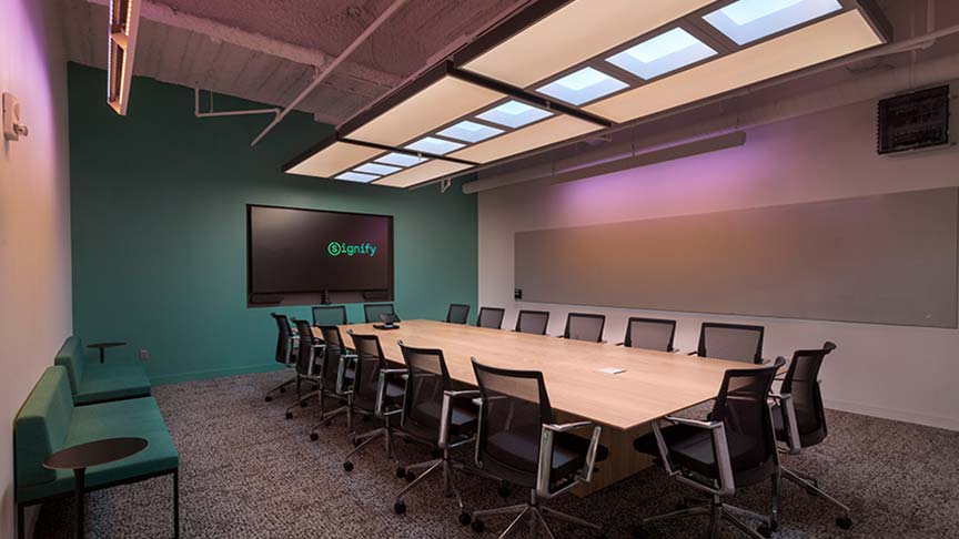 Color Kinetics OneSpace liberates you from the constraints of conventional ceiling design to achieve your uncluttered, minimalistic vision. Use OneSpace to transform any ceiling into a seamless, cohesive space with beautiful, homogeneous light that enhances the design and acoustics of a room.